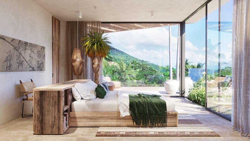 Accommodation of 65m², with separate double bedroom, spacious living room with integrated open plan kitchen, bathroom and with large garden and views to the pool.